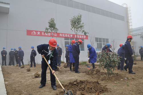 活動伊始,徐州生產(chǎn)基地廠長陽文新講解了本次植樹活動的意義與注意事項(xiàng),并表示2016年徐州生產(chǎn)基地將嚴(yán)格按照“一個(gè)中心,二個(gè)打造,三個(gè)重點(diǎn),四個(gè)成為”為指導(dǎo)思想,打造員工全員參與、部門高效協(xié)作的工作氛圍。植樹過程中,員工們積極參與、共同協(xié)作,挖坑、植樹、填坑、培土、踩實(shí)、扶正、澆水,精心呵護(hù)自己親手種下的樹苗,并貼上了寫有自己名字的標(biāo)簽,希望它們能夠伴隨自己一起成長。