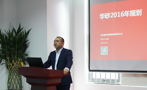 隨后,華砂商務(wù)總監(jiān)王曉峰先生、技術(shù)總監(jiān)史淑蘭女士以及副總工程師嚴興李先生,分別就華砂砂漿商務(wù)、研發(fā)、技術(shù)板塊2015年工作進行總結(jié)分享,并為2016年工作開展做出詳細規(guī)劃。 緊接著,東方雨虹執(zhí)行董事長向錦明先生致辭。他說,過去的一年間,通過華砂全員的努力,華砂未來的發(fā)展已經(jīng)打下良好基礎(chǔ)。暢想未來,華砂毫無疑將堅持中高端定位,順應(yīng)市場系統(tǒng)提供商的需求。并且在發(fā)展中要夯實產(chǎn)品體系、夯實產(chǎn)品服務(wù),用不斷學(xué)習(xí)夯實華砂,做到強化管理,提質(zhì)降耗,在新一年完成華砂向前發(fā)展的蛻變。
