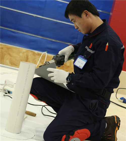 比賽現(xiàn)場(chǎng),徐龍瀟進(jìn)行管根節(jié)點(diǎn)處理