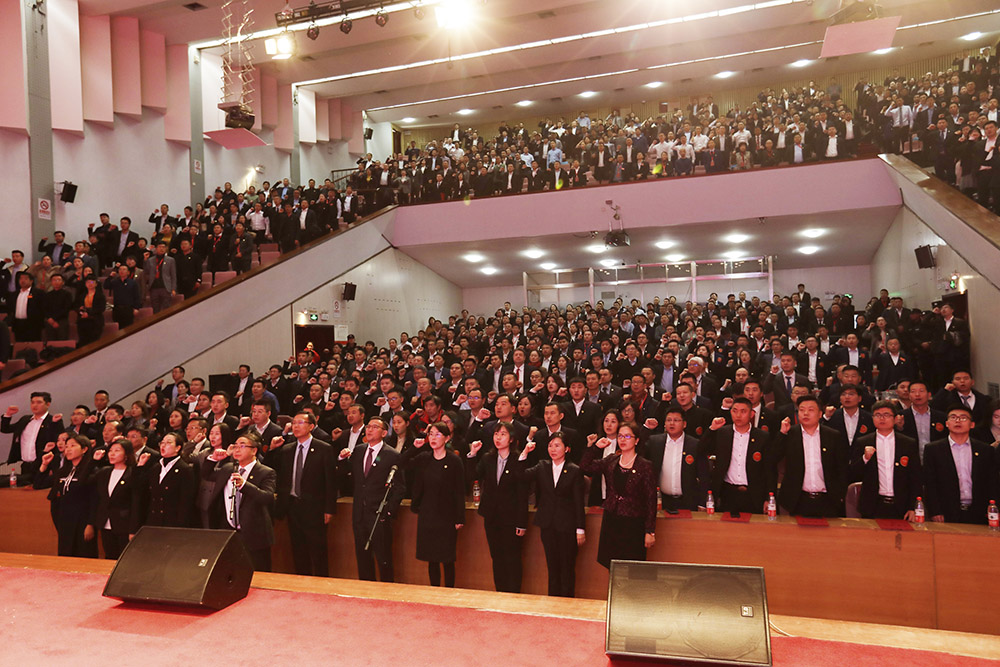 大會(huì)最后環(huán)節(jié),全體與會(huì)人員向《東方雨虹基本法》宣誓。