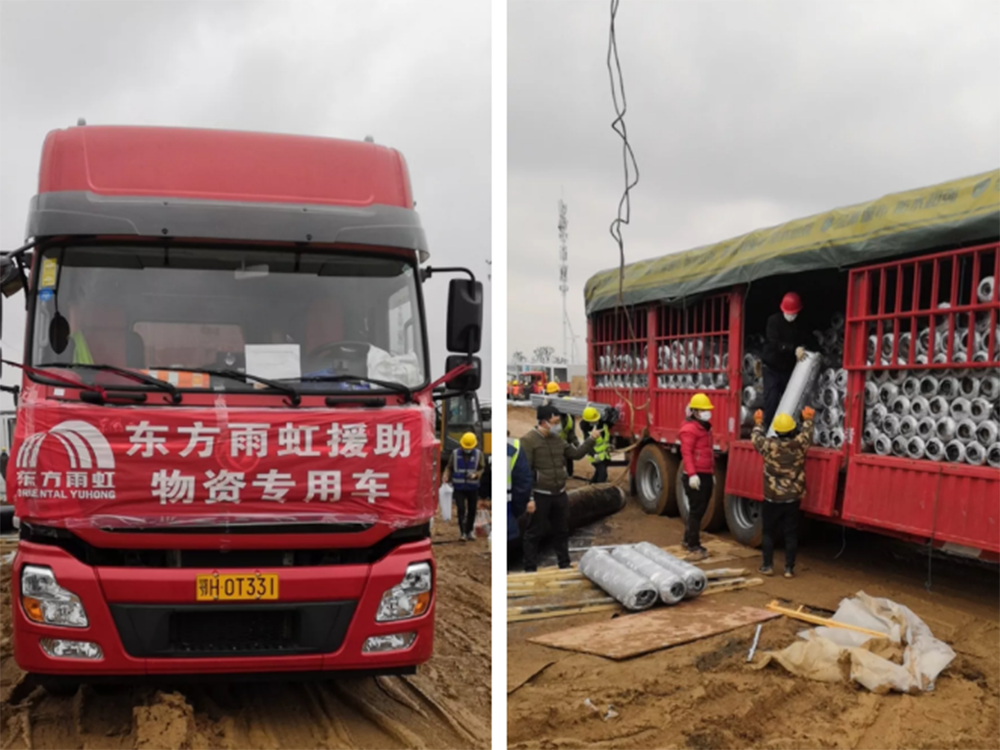 面對嚴峻的“疫情”,荊門東方雨虹在得知武漢雷神山醫(yī)院需要物料支援后,迅速將所需物料:東方雨虹SAM-921高強型自粘瀝青防水卷材裝車,堅定沖向抗疫一線。