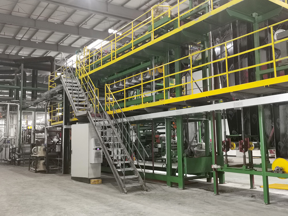 據(jù)悉,此條自研組合卷材生產(chǎn)線可實現(xiàn)有胎、無胎卷材的自由切換生產(chǎn),年產(chǎn)1500萬平方米改性瀝青防水卷材,通過傳感技術(shù),從前端原材料導(dǎo)入到末端產(chǎn)品碼垛,實現(xiàn)各環(huán)節(jié)有序銜接,進(jìn)一步保證生產(chǎn)線的效率,增強(qiáng)產(chǎn)品的性能穩(wěn)定,實現(xiàn)數(shù)字化生產(chǎn)。