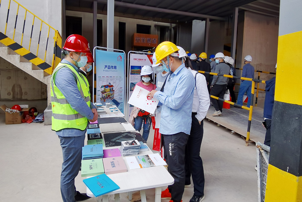 會(huì)上,東方雨虹設(shè)立展位,向與會(huì)人員介紹了地下室底板預(yù)鋪反粘系統(tǒng),非固化橡膠瀝青防水涂料復(fù)合瀝青類卷材系統(tǒng),F(xiàn)D外墻內(nèi)保溫復(fù)合系統(tǒng)等,并現(xiàn)場(chǎng)展示實(shí)體樣板間、模型,普及講解建筑建材系統(tǒng)解決方案的施工工藝及安全操作注意事項(xiàng)。