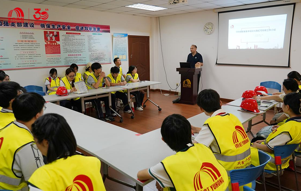 在東方雨虹上海生產(chǎn)研發(fā)物流基地展廳內(nèi),安環(huán)資深經(jīng)理陳濤詳細介紹企業(yè)發(fā)展歷程、參建經(jīng)典工程案例及核心產(chǎn)品。直觀展示配合生動講解,幫助學生建立對東方雨虹產(chǎn)品特點與技術(shù)優(yōu)勢的初步認知,為后續(xù)實踐奠定基礎(chǔ)。