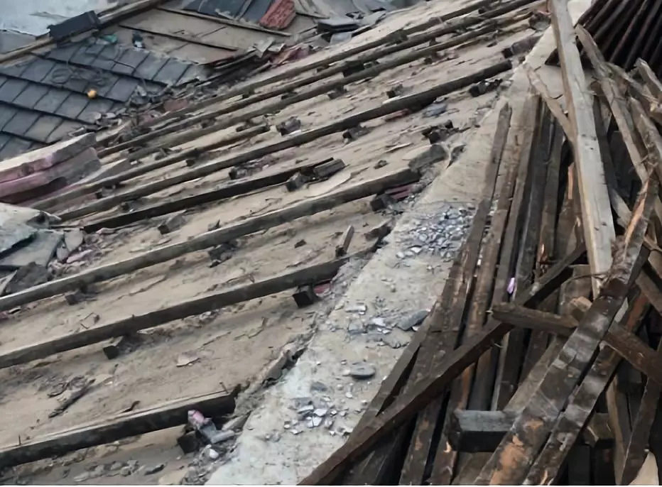 木條未做防腐處理,木條腐蝕斷裂部位瓦片松動(dòng),瓦片之間出現(xiàn)縫隙,雨水沿縫隙進(jìn)入下部;