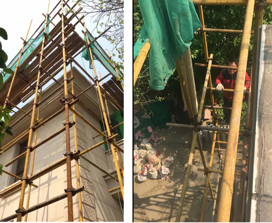 需要搭設(shè)鋼管架直至屋頂,材料運(yùn)輸及垃圾清運(yùn)均通過(guò)吊機(jī)上下運(yùn)輸;
