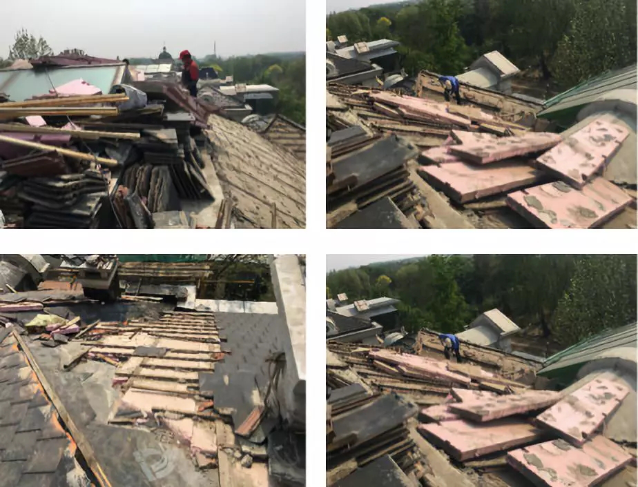 1) 拆除屋面瓦、保溫板,鏟除木龍骨、原防水層至堅(jiān)實(shí)基層,并可進(jìn)行二次利用;