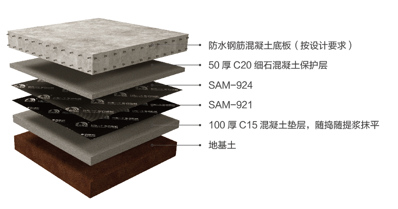 SAM-924纖維增強型高分子膜基自粘瀝青防水卷材常見的防水系統(tǒng)方案包括: